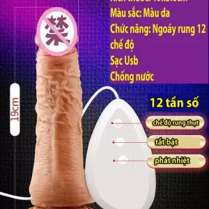Dương vật được làm hoàn toàn bằng silicon cao cấp, an toàn tuyệt đối với người sử dụng, thiết kế đẹp mắt, cùng màu da, đường gân rất giống dương vật thật. Sản phẩm được nhà sản xuất ưu ái khá nhiều tính năng độc đáo như rung thụt, sưởi ấm , Dương vật sẽ tự động rung thụt đi sâu bên trong âm đạo và kích thích điểm G, những đường gân trên thân dương vật sẽ kích thích thành âm đạo cho chị em thêm phê pha hơn, bên canh đó là chức năng sưởi ấm , dương vật sẽ ấm dần lên tạo cho bạn cảm giác như đang quan hệ với dương vật thật vậy.